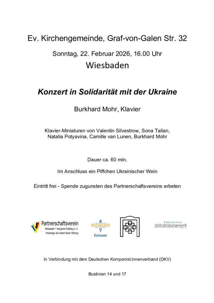 Konzert in Solidarität mit der Ukraine am 22. Februar 2026 in Wiesbaden